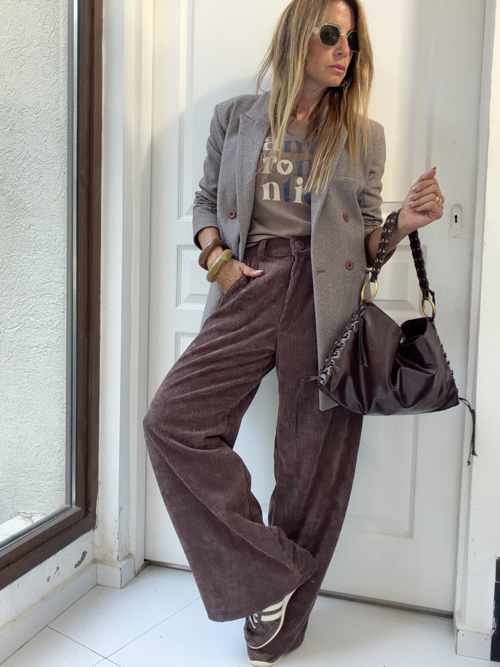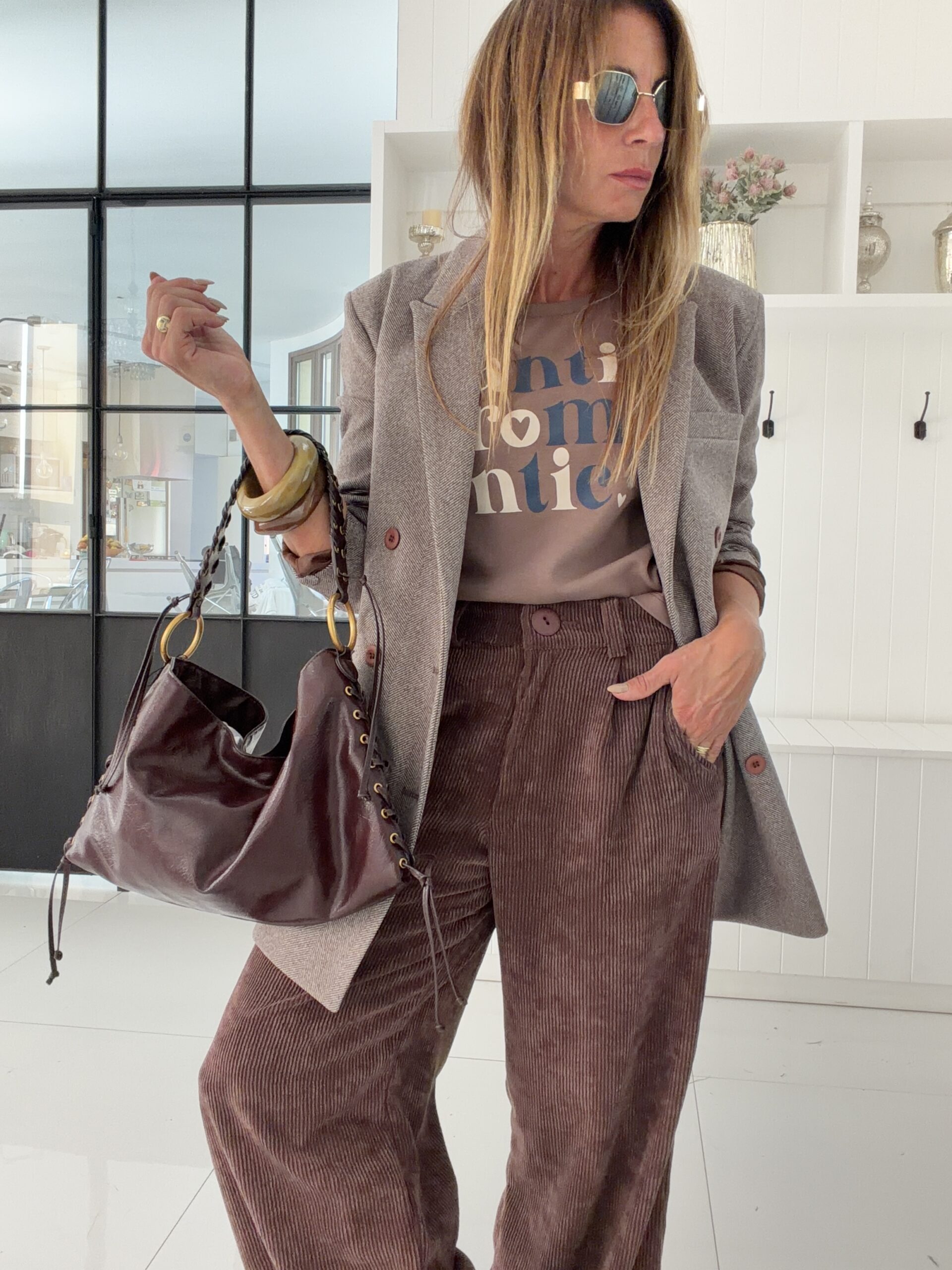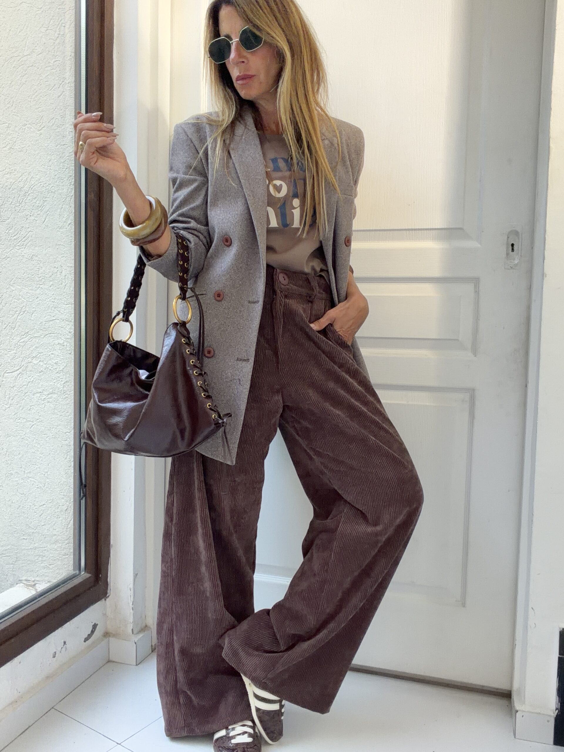 blazer confeccionado en panio espigado , 100% forrado y con botones al tono