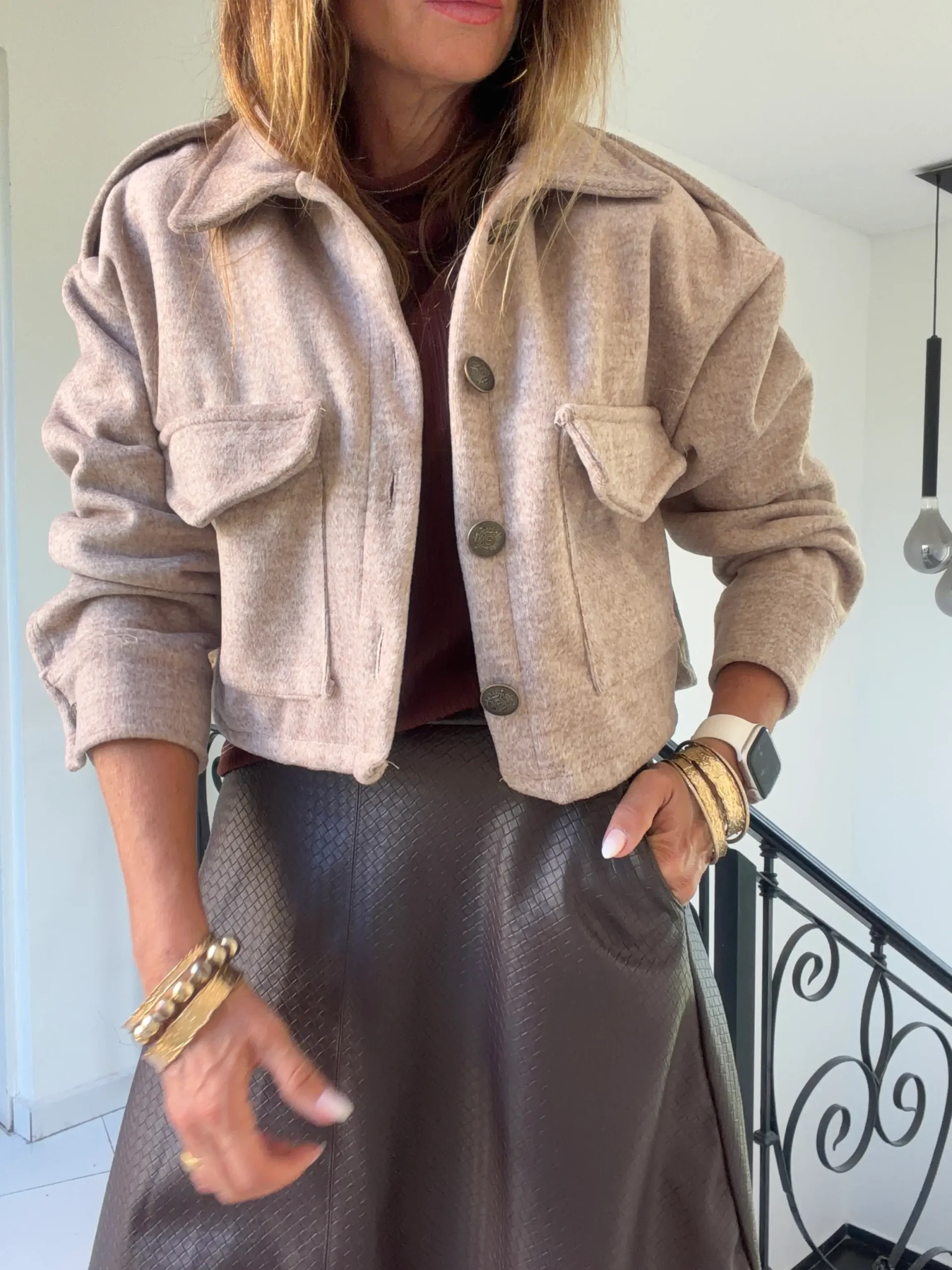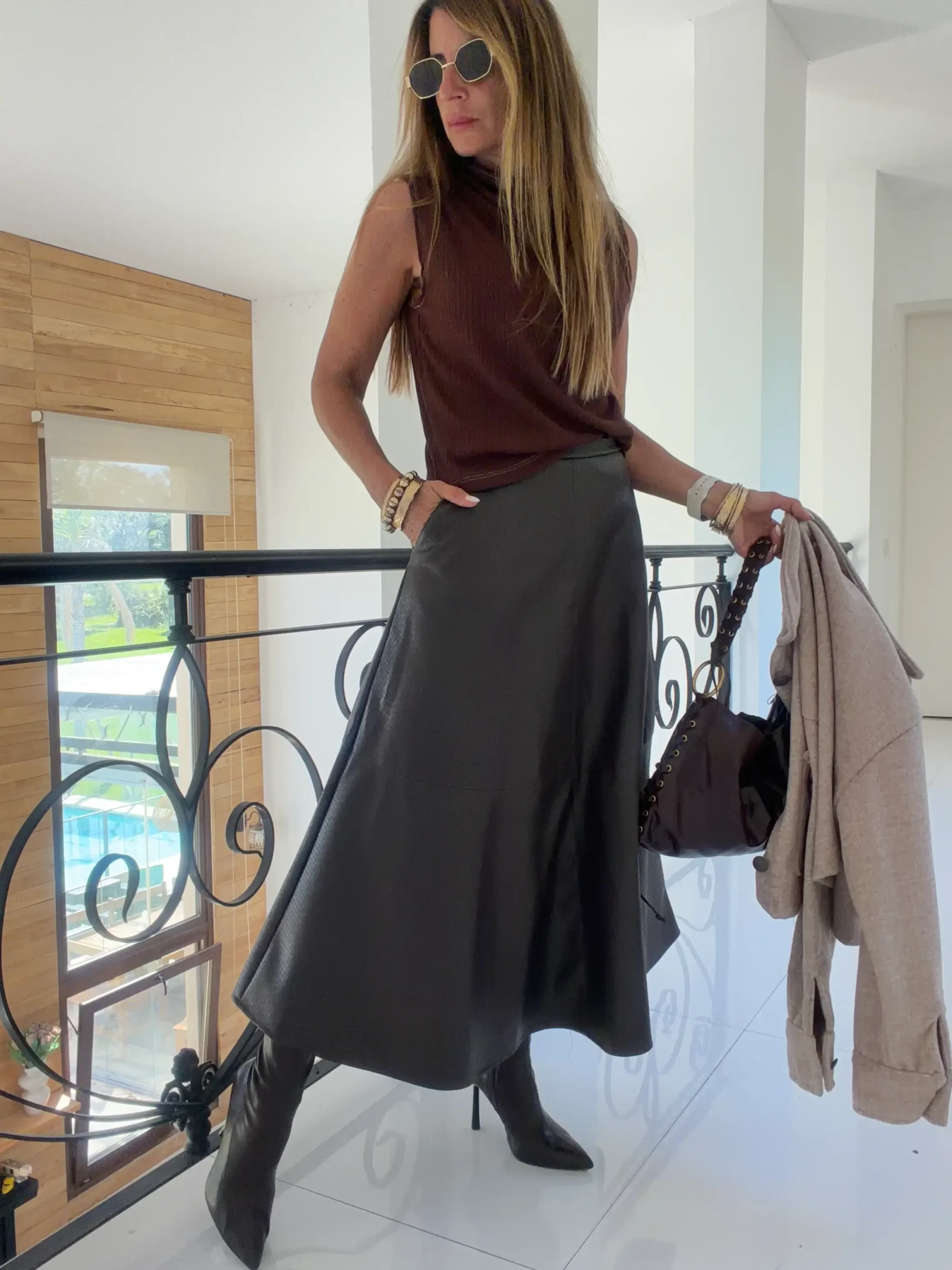 Confeccionada en cuero ,cierre trasero , bolsillos laterales