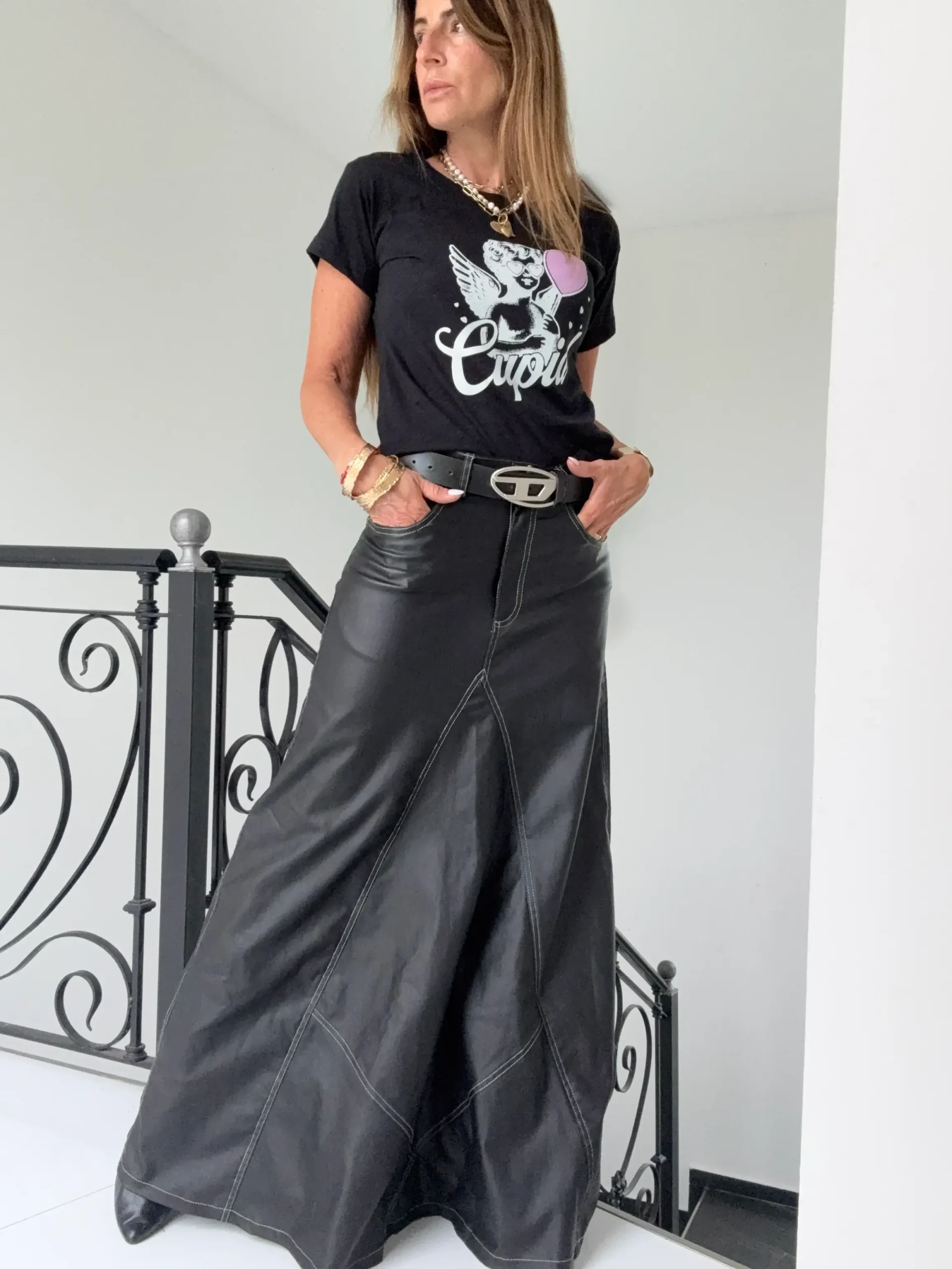 falda confeccionada en Bengalina engomada elastizada. Cede con el uso