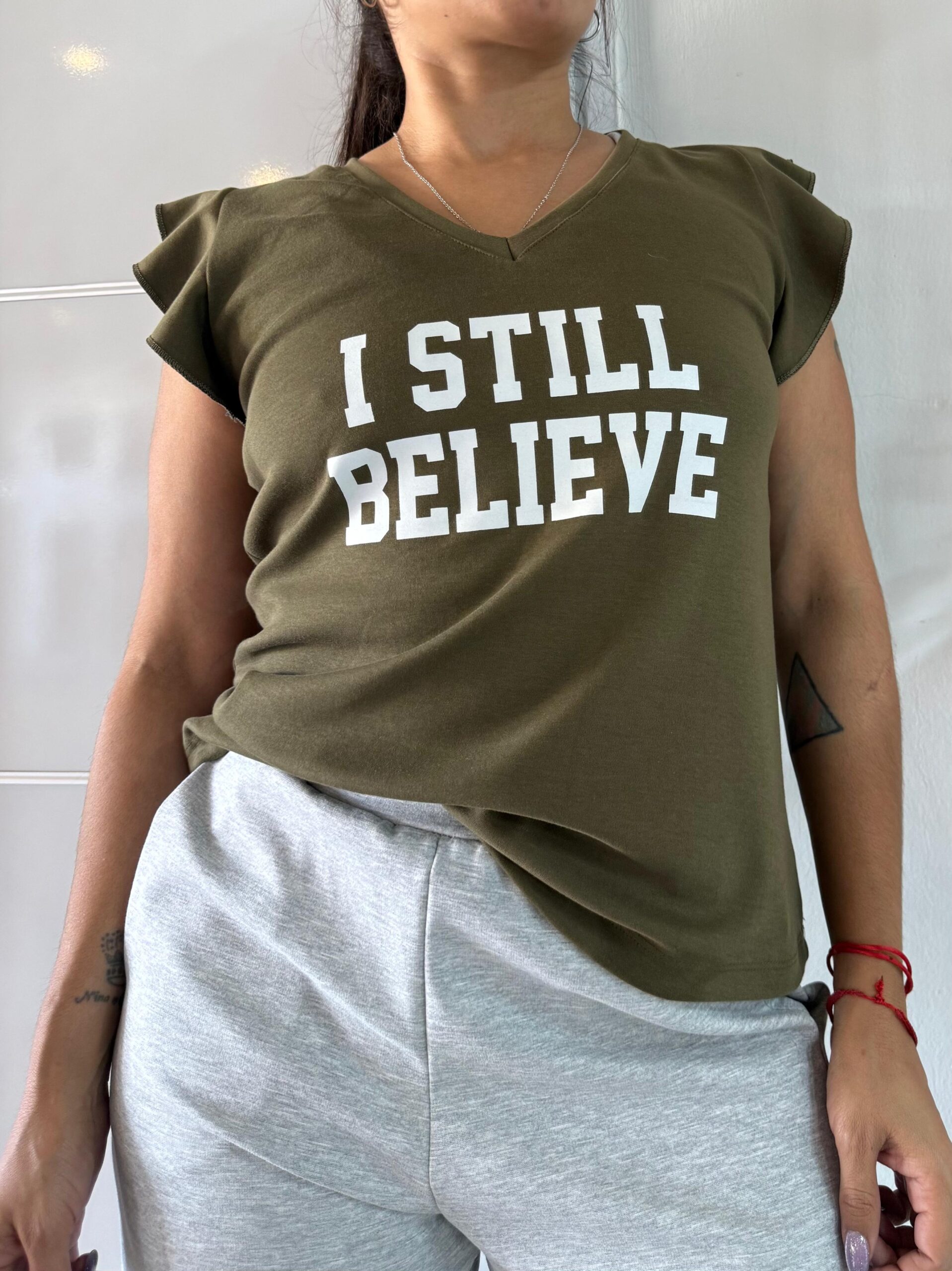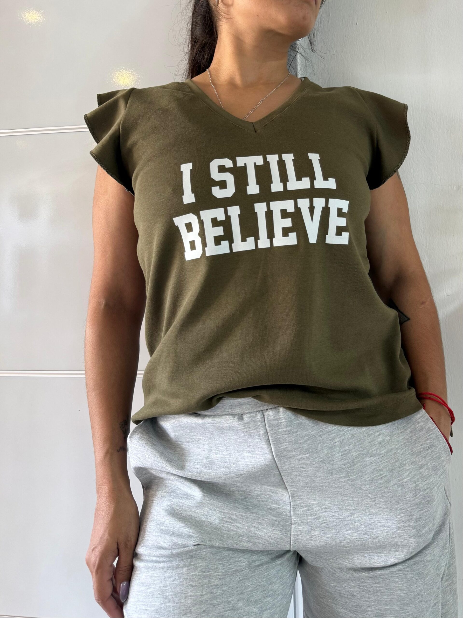 musculoda escote en v con pequenios volados en las mangas