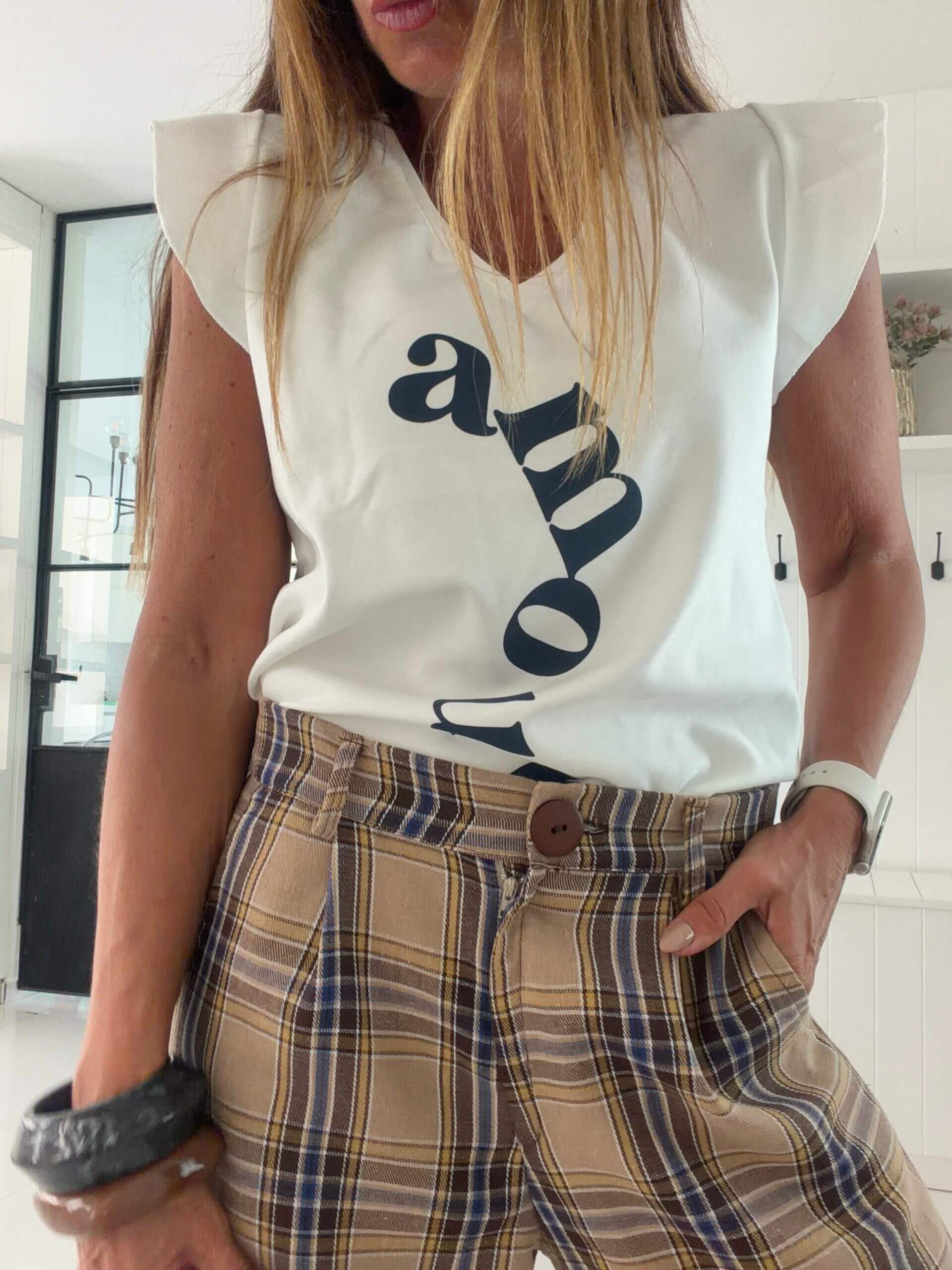 musculoda escote en v con pequenios volados en las mangas
