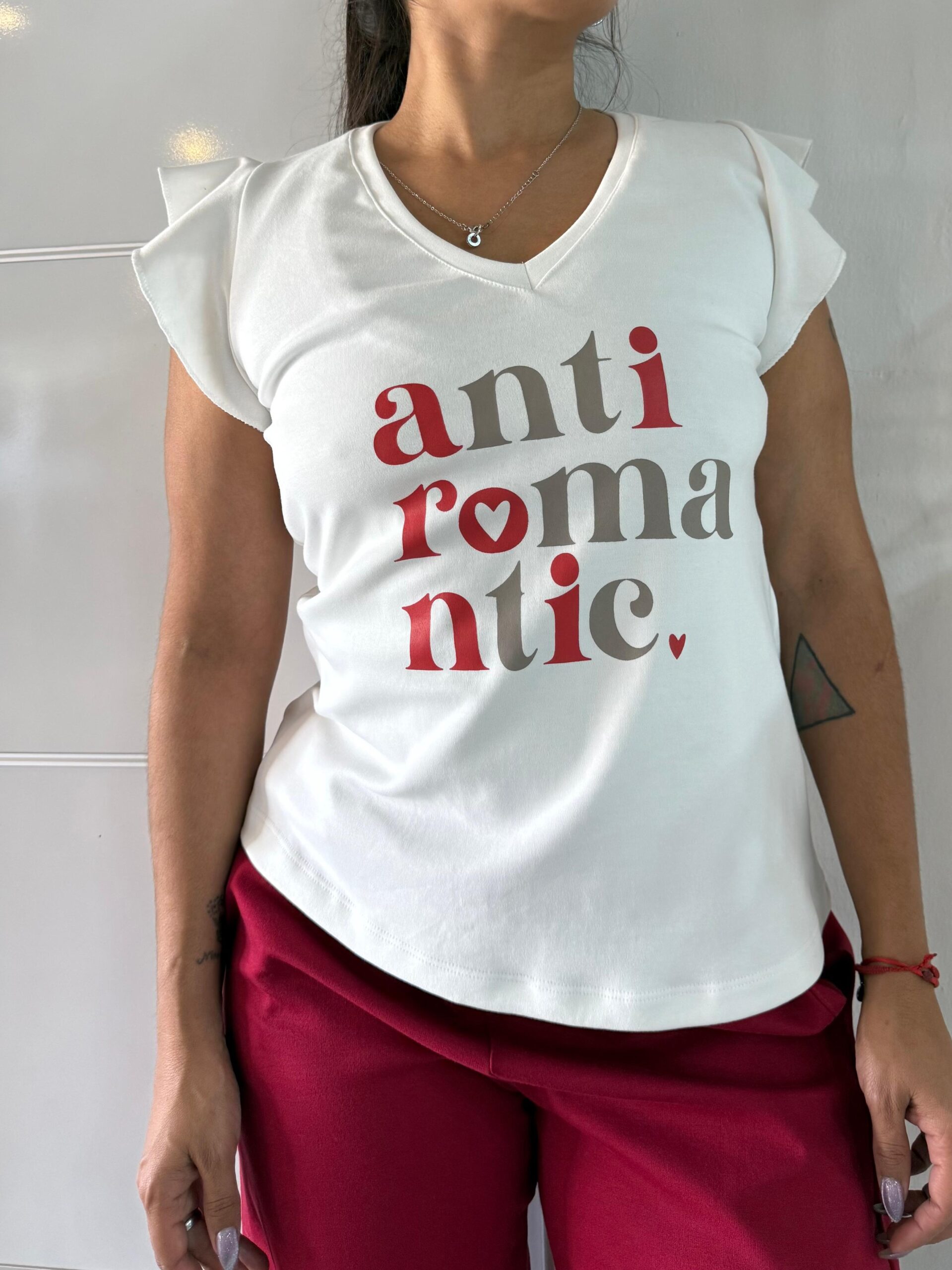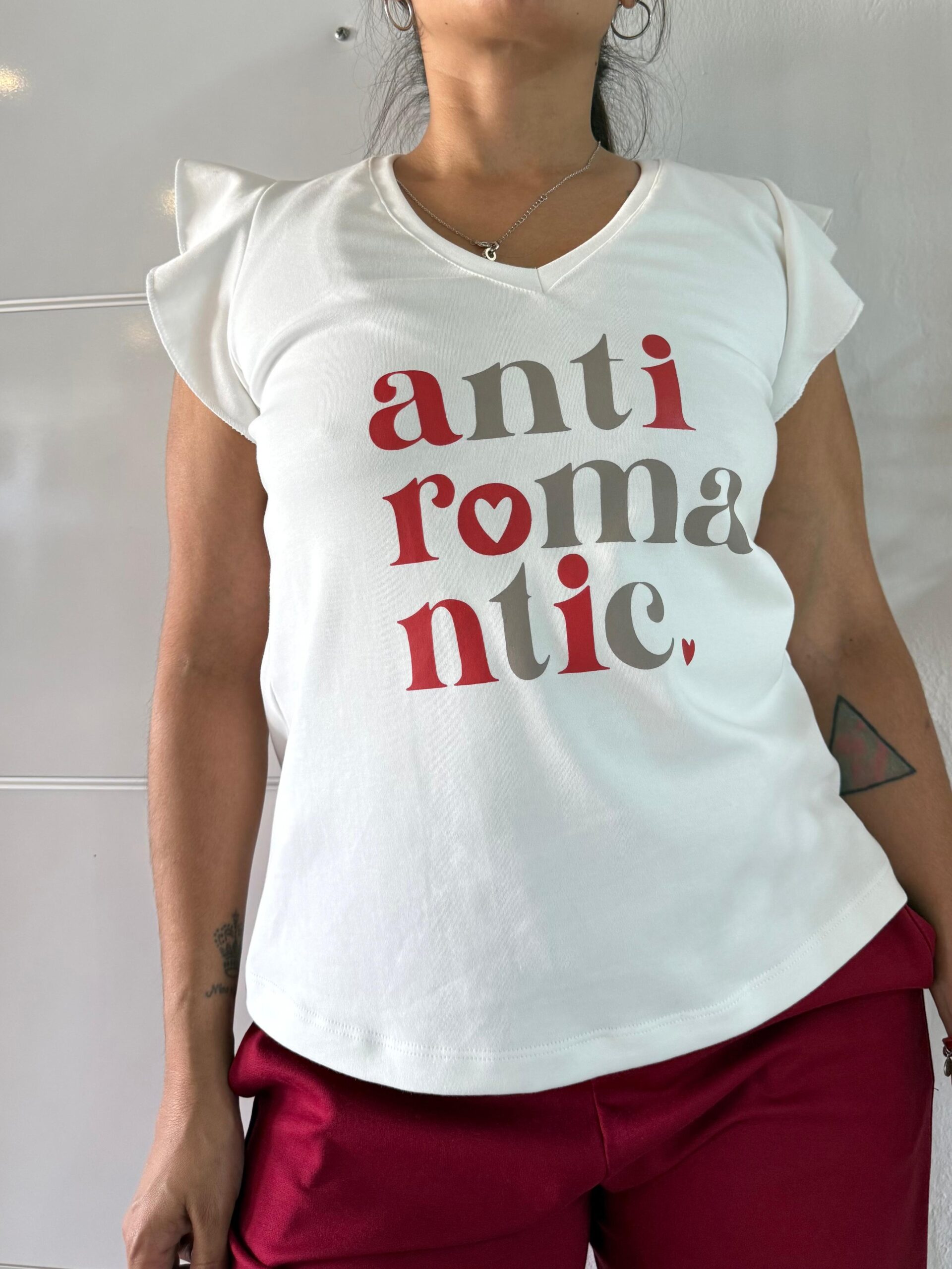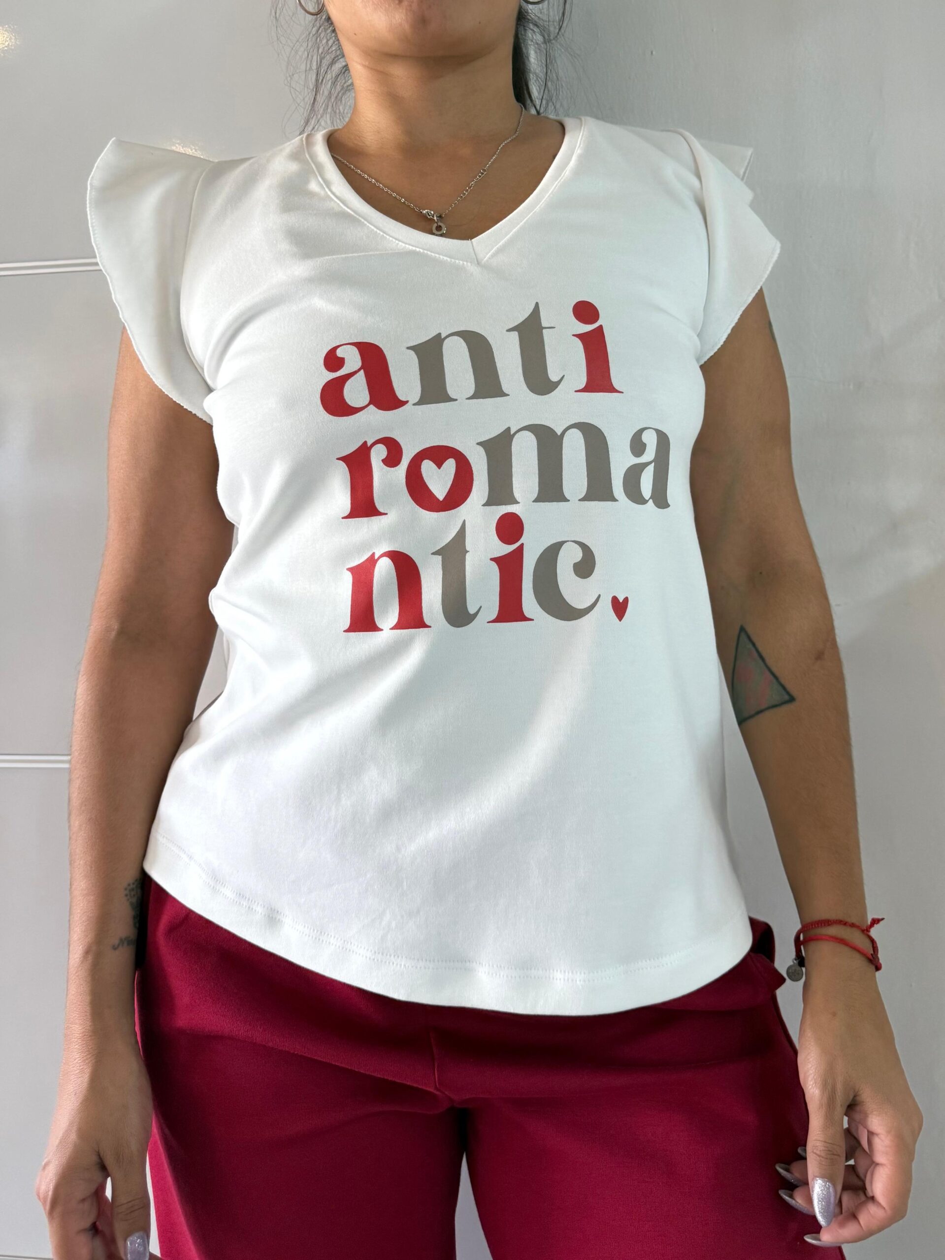 musculoda escote en v con pequenios volados en las mangas