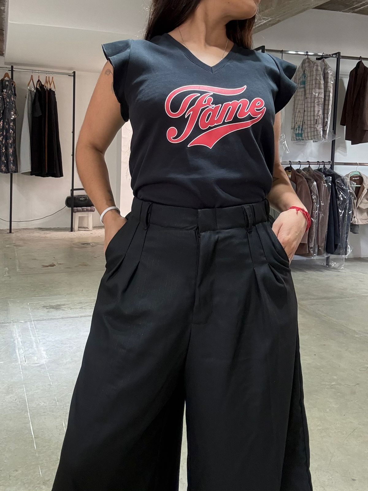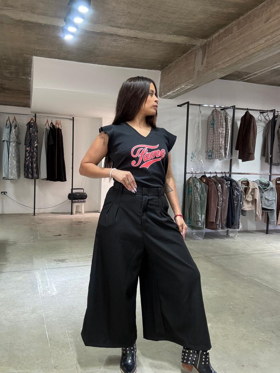 pantalon con bolsillos laterales cintura con elastico, bolsillol trasero, cierre delantero