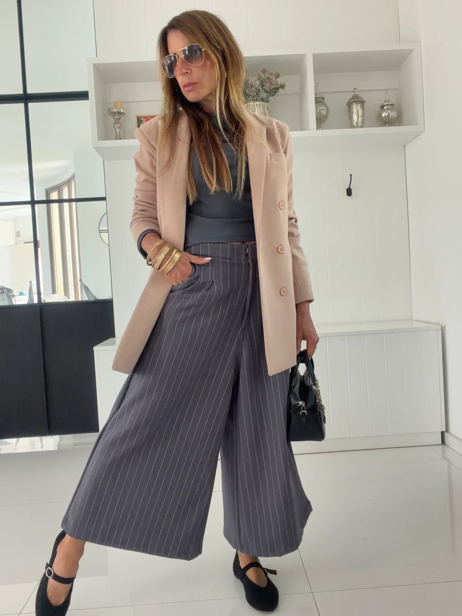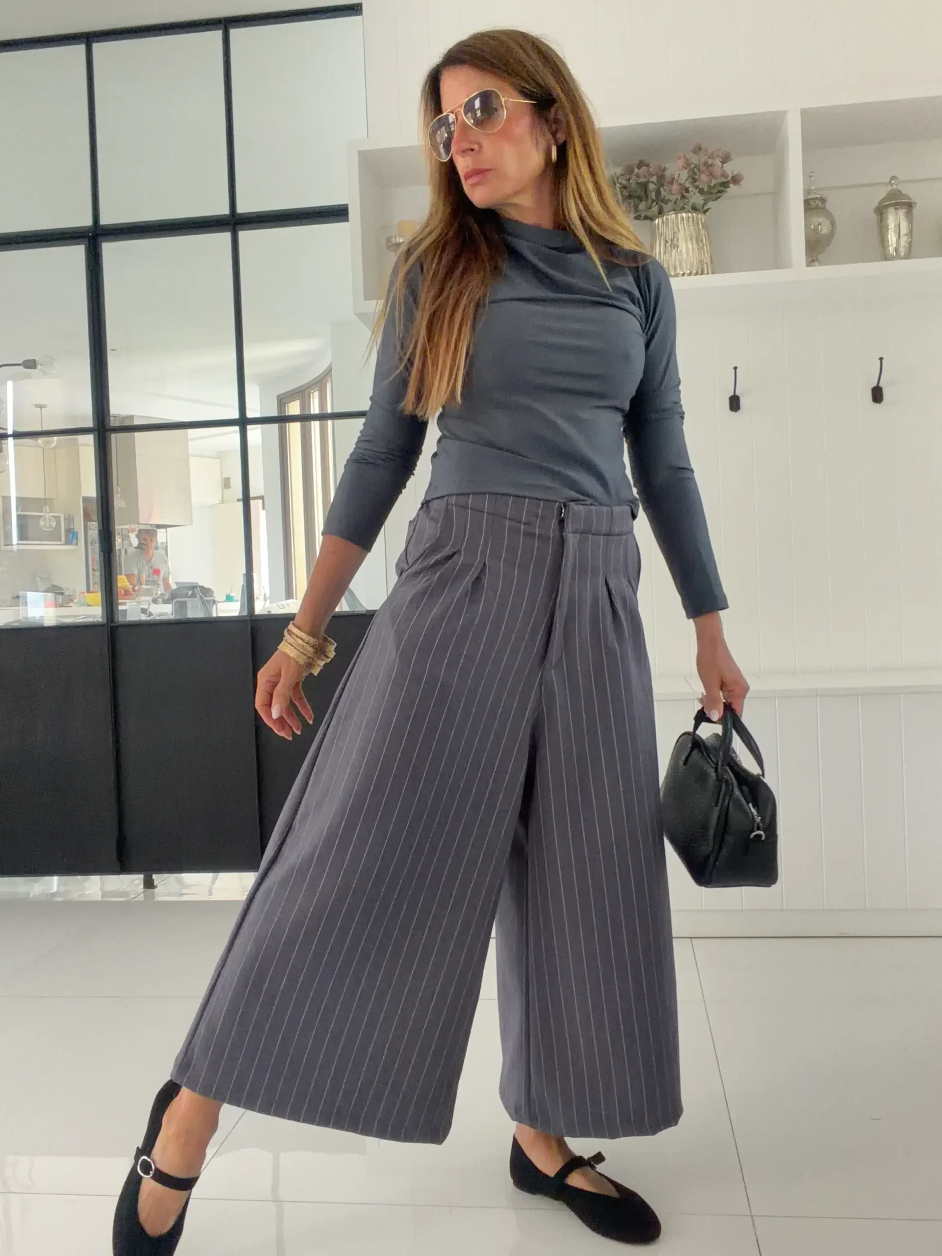 pantalon de estilo oriental, ancho de piernas , resalta la cintura, y el elastico trasero aporta comodidad.