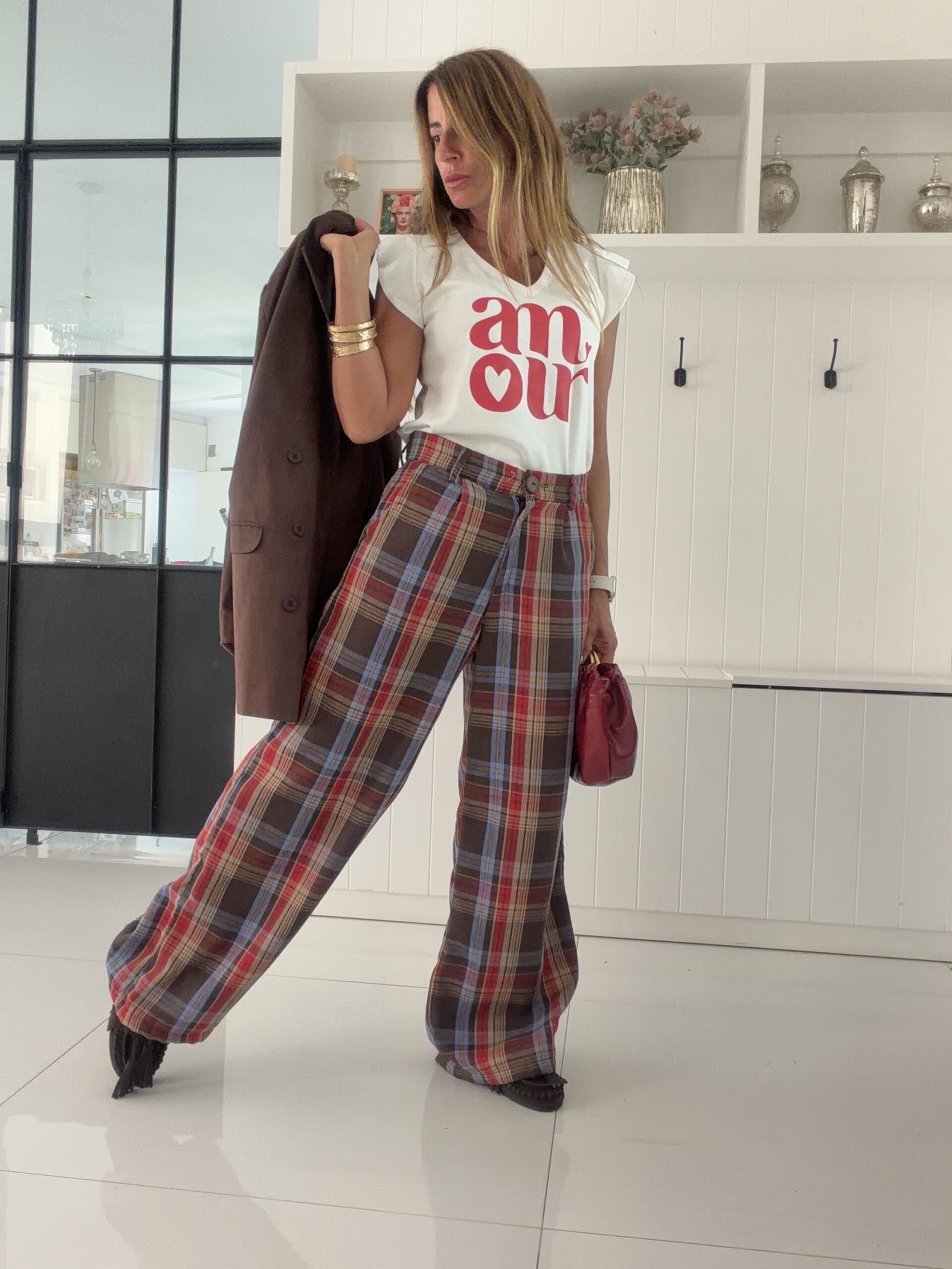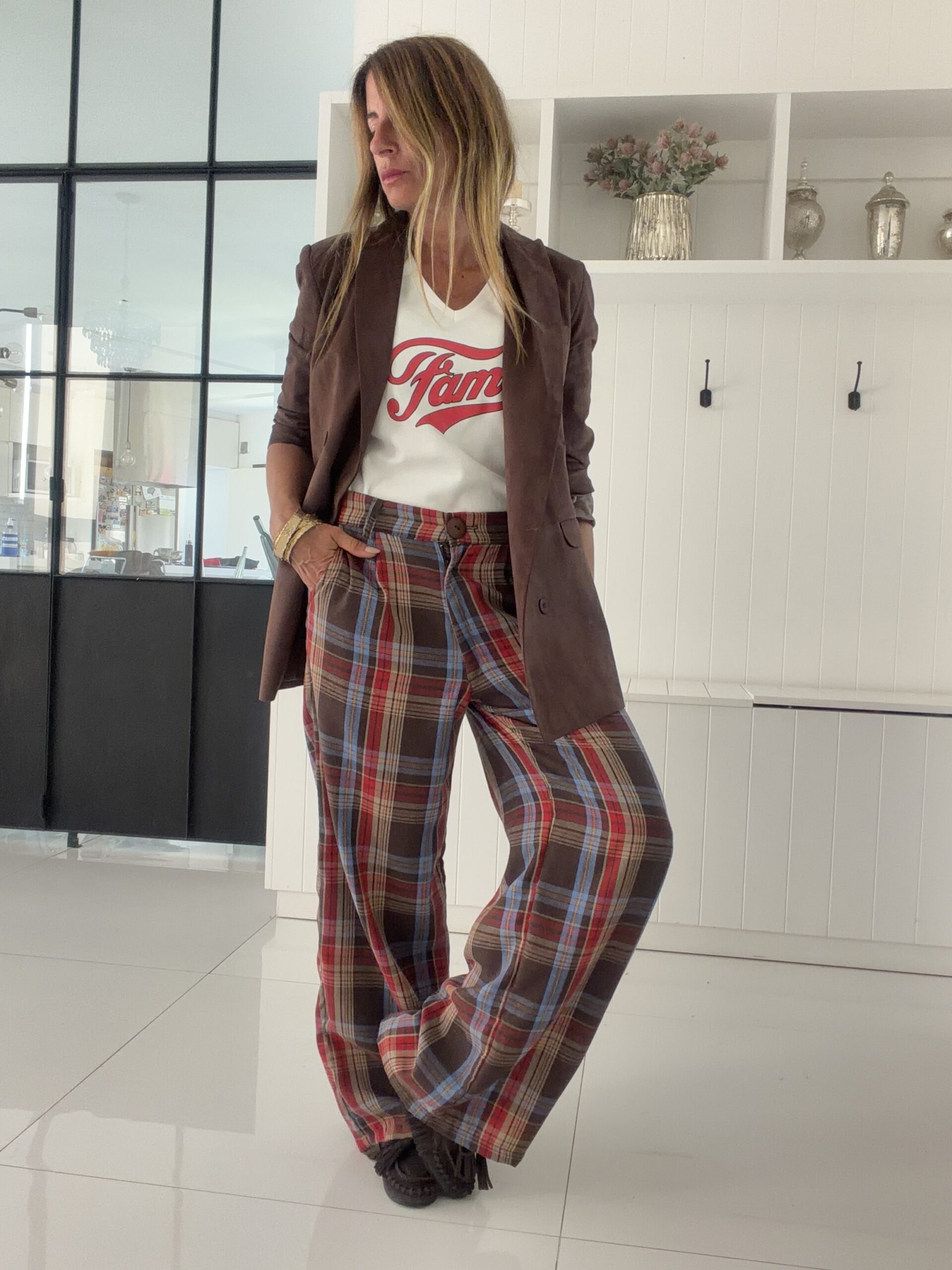 la modelo tiene talle s de pantalón y usa talle 34 de jean, pesa 53 mide 1,57, cola 88 cm