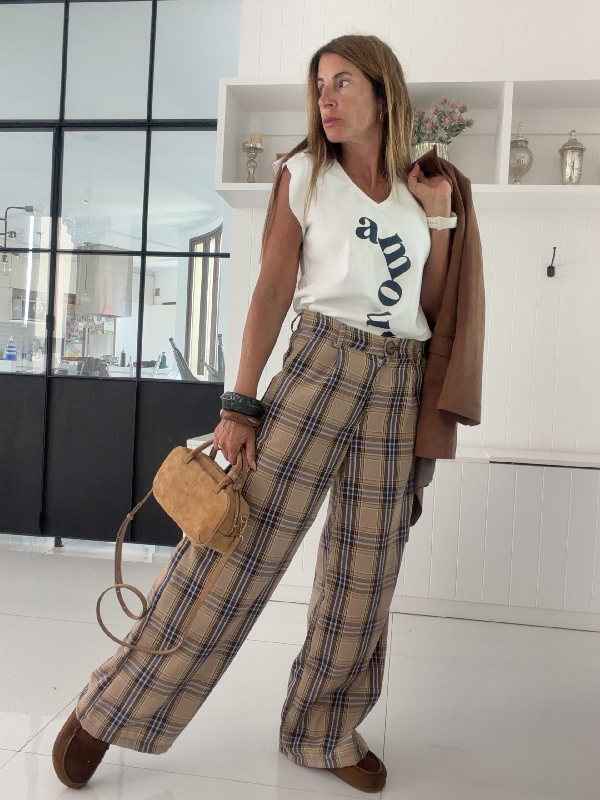 Pantalon sastrero ritta cuadrille miel y lavanda