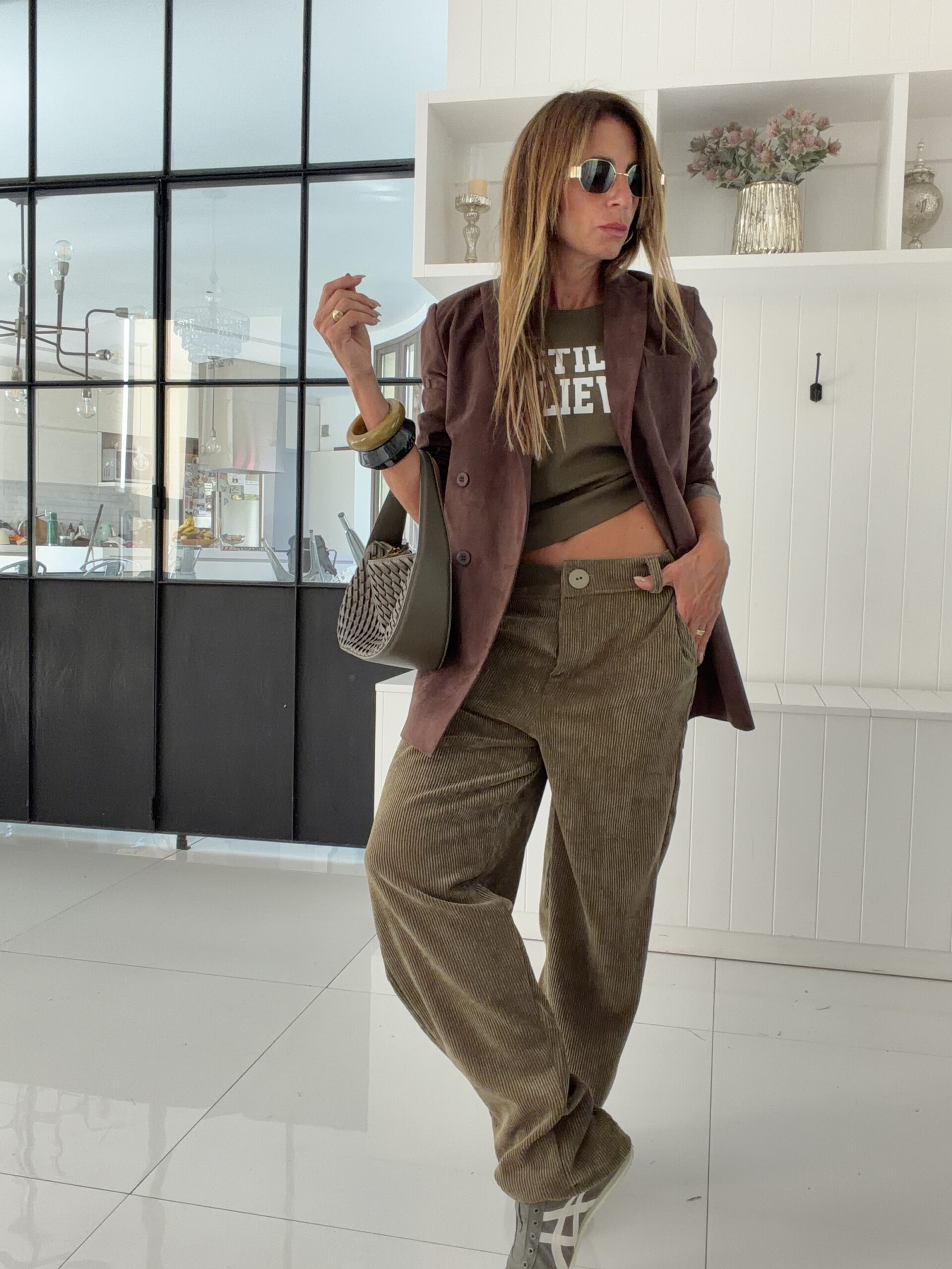 el modelo del pantalon es barrel, ovalado hacia las piernas y termina mas nagosto en la pantarrilla