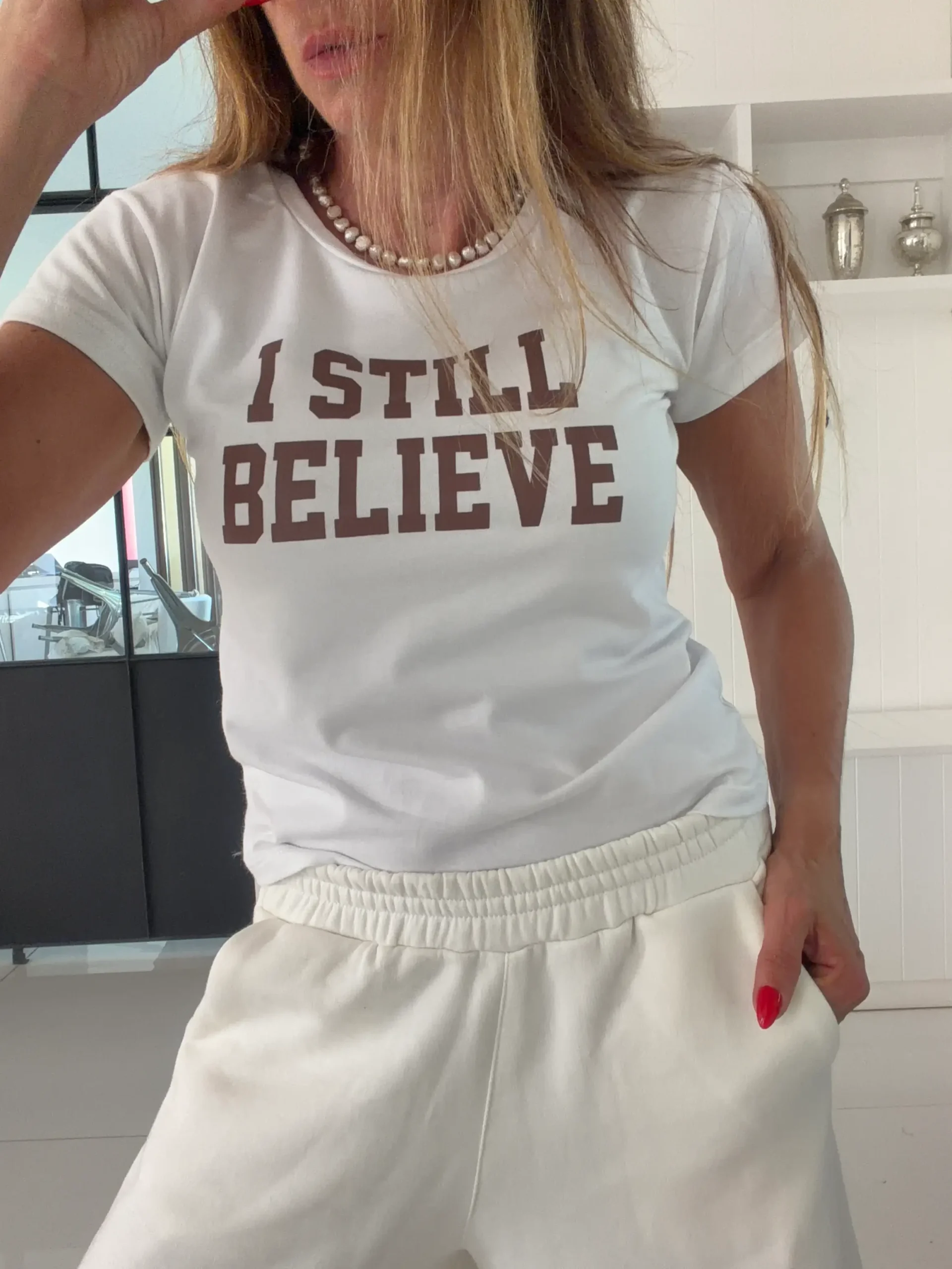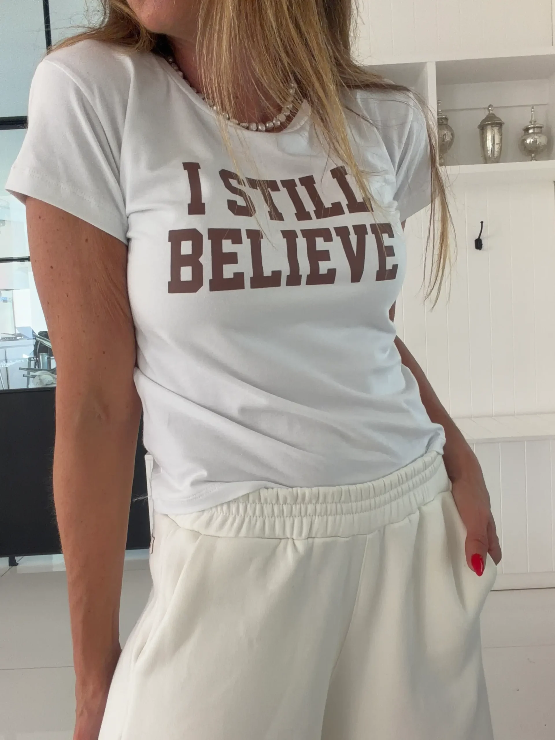 Remera smallest blana i still believe chocolate