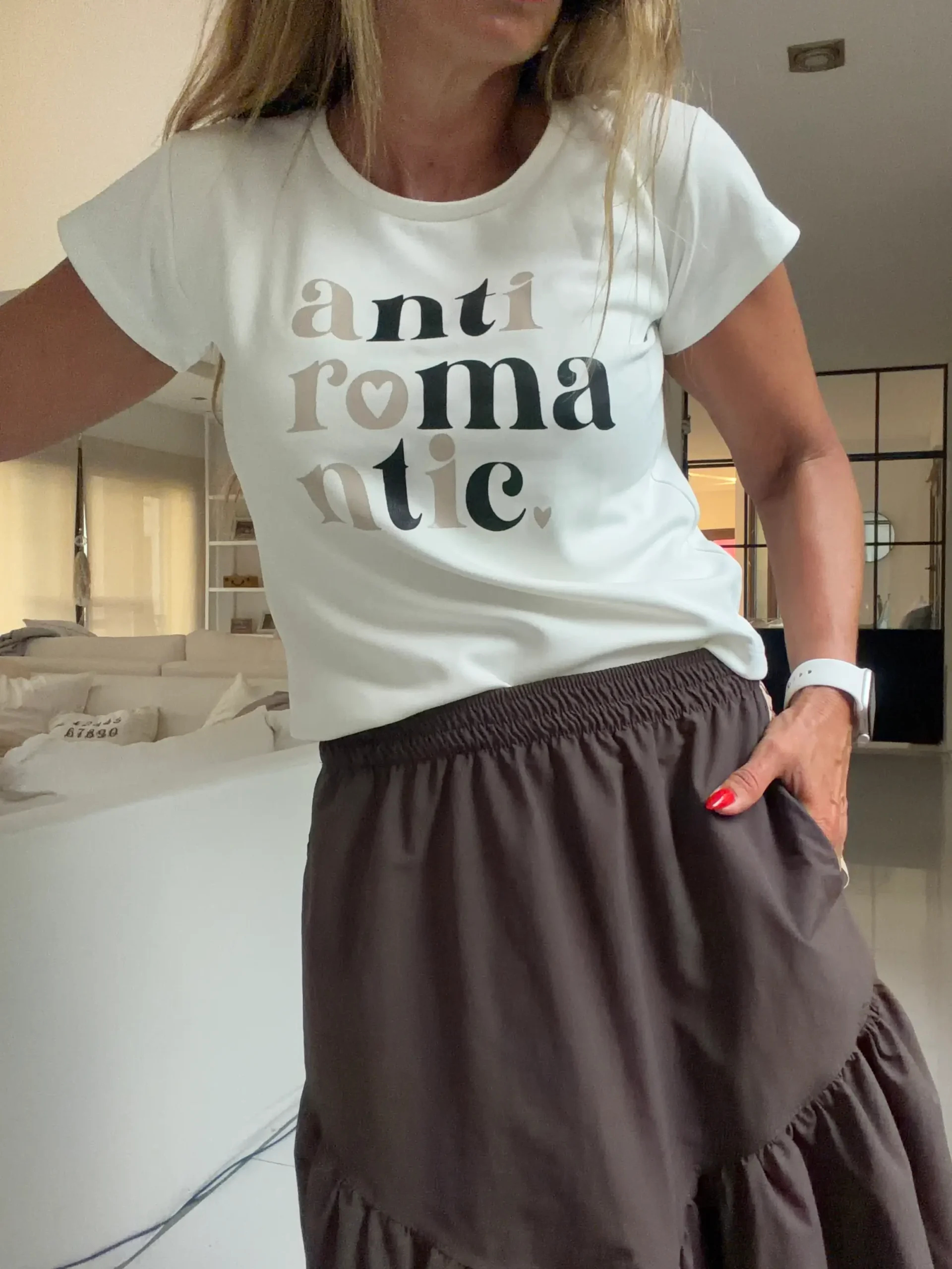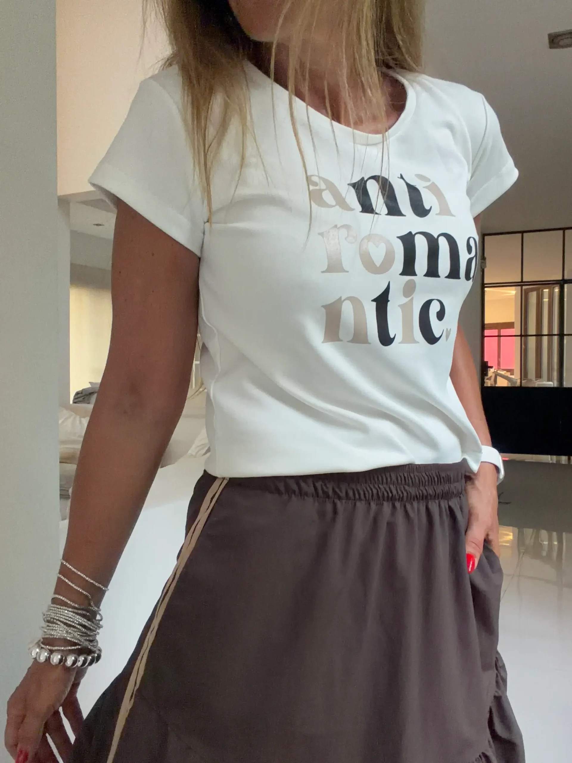 Remera básica cuello en redondo, estampada, no planchar estampa, algon con spandex